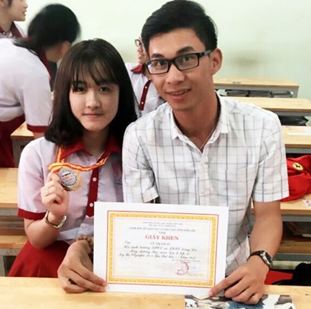 Hà Vi cùng bạn học đạt giải cao tại kỳ thi Olympic tỉnh Đắk Lắk. (Ảnh: Vietnamnet) |