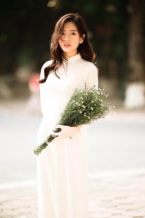 Không cần trang điểm, ăn diện cầu kì, nữ sinh ĐH Y Hà Nội diện áo dài trắng tinh khôi vẫn khiến cộng đồng mạng điên đảo với nhan sắc trong trẻo như hạt sương mai.
