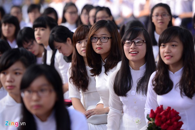 | Nét duyên dáng của nữ sinh trường THPT Chu Văn An trong ngày tựu trường. Ảnh: Zing News |