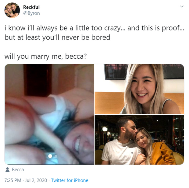 Cực chẳng đã, Reckful sau đó đã phải lên tiếng yêu cầu các fan không gây áp lực lên Becca. Anh cũng nói thêm rằng hành động này chỉ là để chứng minh cô thực sự là người mà anh yêu, là định mệnh của đời anh.