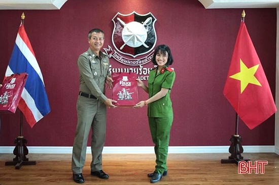 Thủy Tiên đại diện cho sinh viên Học viện Cảnh sát nhân dân tham gia khóa tập huấn, trao đổi sinh viên quốc tế tại trường Học viện Cảnh sát Hoàng gia Thái Lan. Ảnh: Báo Hà Tĩnh. |