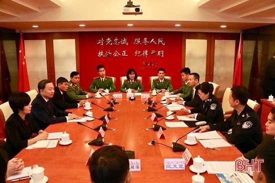 Thủy Tiên đại diện cho đoàn Học viện Cảnh sát nhân dân Việt Nam tham dự buổi làm việc của Thượng tướng Tô Lâm, Ủy viên Bộ chính trị, Bộ trưởng Bộ Công an Việt Nam tại trường Đại học Công an Nhân dân Trung Quốc năm 2018. Ảnh: Báo Hà Tĩnh |