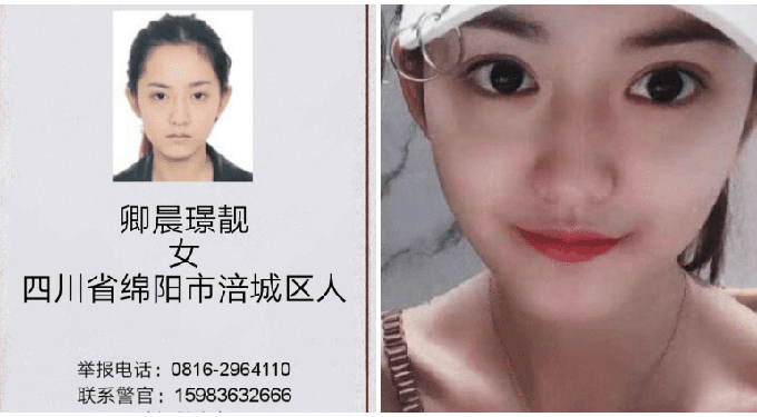 Qingchen trong ảnh truy nã của cảnh sát (trái) và ngoại hình xinh đẹp bên ngoài (phải). Ảnh: Nextshark. |