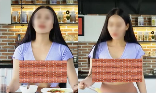Trong quá trình nấu nướng, trò chuyện, có không ít khoảnh khắc cô nàng còn để lộ "nhũ hoa" vô cùng kém duyên. Thế nhưng, cô nàng dường như không mấy bận tâm mà vẫn thoải mái nấu ăn tiếp. Chưa dừng lại ở đó, các góc máy quay cũng thường xuyên tập trung vào vòng 1 cô gái thay vì quay các bước thực hiện món ăn.