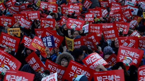 Bê bối chính trị chấn động Hàn Quốc đã khiến một lượng lớn người biểu tình đổ ra các đường phố và kêu gọi bà Park từ chức hàng tuần.