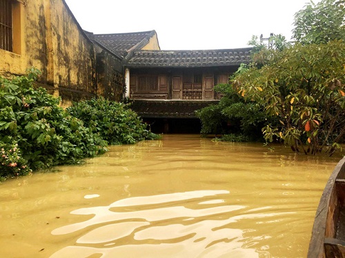 Sáng ngày 5/11, nước ở đường Bạch Đằng sát bờ sông Hoài đã trên 1m, nhiều nhà dân, nhà hàng, quán ăn đã đóng cửa. Đến sáng ngày 6/11, nước lụt dâng cao khiến nhiều con đường ở phố cổ ngập chìm trong nước.