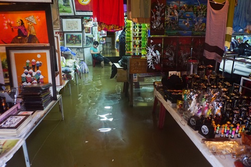 Hàng loạt cửa hàng, nhà dân lênh láng nước. Ảnh: báo VnExpress |