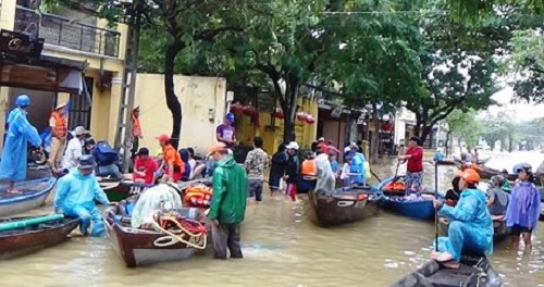 Rất đông bà con ở vùng thấp trũng nhất của khu phố cổ đã thuê ghe vượt đoạn sông Hoài để qua bên chợ Hội An mua sắm lương thực. Nhận thấy nước lũ dâng cao, một số du khách nước ngoài đang đăng kí lưu trú tại phố cổ Hội An đã chủ động rời khách sạn.