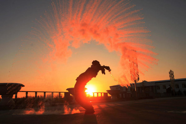 Nhiệt độ giảm tới mức thấp nhất tại vùng cực bắc Trung Quốc làm nước nóng hóa thành băng nhanh chóng.
