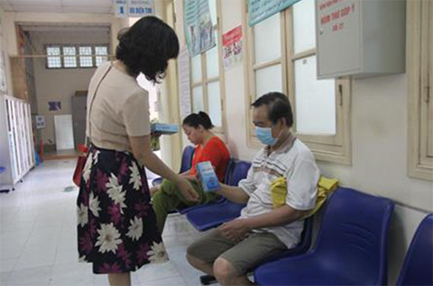 Bệnh nhân vui vẻ nhận suất quà Boni-Smok |