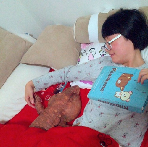 | Chú thằn lằn thích được rúc vào lòng và ngủ cùng hai vợ chồng |