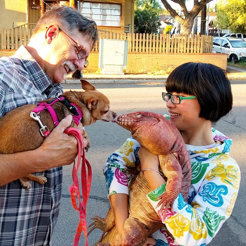 | Chú thằn lằn thương được mang đi dạo cùng gia đình |