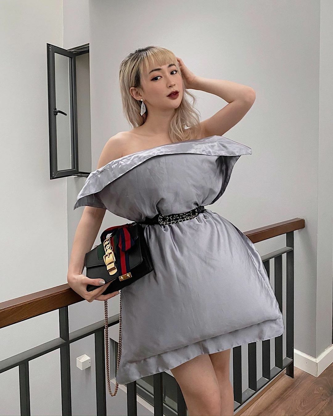 Trào lưu "lấy gối làm váy" cũng bắt đầu được các mỹ nhân Việt hưởng ứng. Sun Ht chứng minh là một "rich kids" đích thực với bộ trang phục "bê từ phòng ngủ" nhưng đi kèm phụ kiện rất đắt đỏ. |