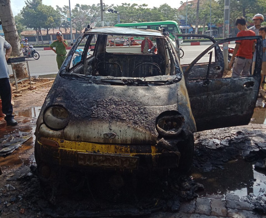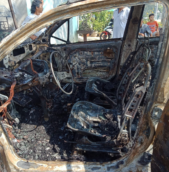 "Tôi đang ngồi quan sát, thấy lửa bùng lên nên hoảng quá bỏ chạy ra đường hô hoán mọi người giúp dập lửa nhưng tiệm chỉ có vòi nước nhỏ, đành bất lực nhìn xe bị thiêu rụi", chủ xe nói.