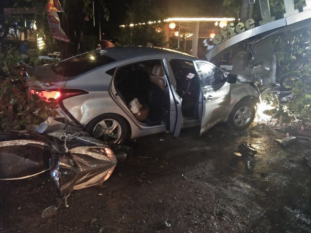 Tại hiện trường, nhiều xe máy tại bãi gửi xe hư hỏng, nằm la liệt. Chiếc ô tô 4 chỗ gây tai nạn bị hư hỏng phần đầu.