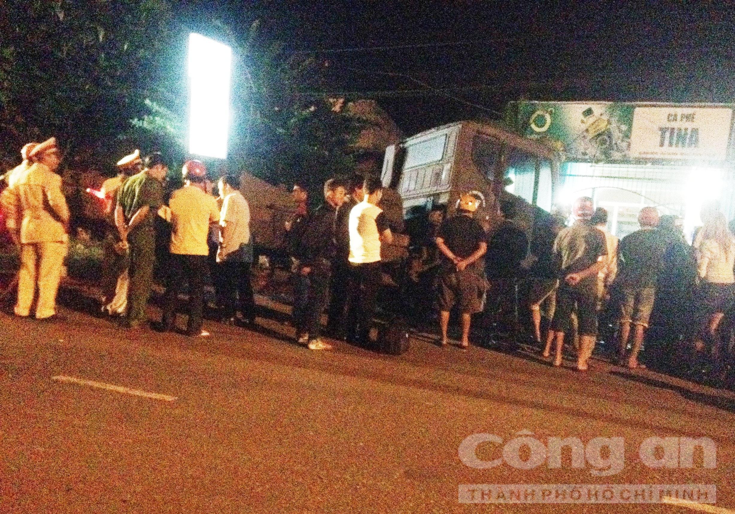 Khi bà H vừa ra đến đoạn trước số nhà 179 thì cùng lúc này chiếc xe đầu kéo mang BKS 81L-02077, do tài xế Hồ Quang Trung (SN 1983, trú TP Pleiku) điều khiển, lao tới. Chiếc xe đầu kéo kéo theo 1 chiếc xe ô tô, đi đến đoạn đường trên thì xe ô tô nổ lốp. Chiếc xe trật đường, văng vào người bà H.