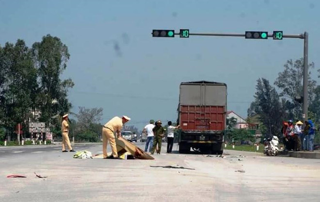 Vaò thời điểm trên, xe tải biển Bắc Giang do anh Phan Phúc Định (30 tuổi, trú tỉnh Thái Bình) chạy trên đường tránh thành phố Vinh (Nghệ An), khi tới ngã tư giao với quốc lộ 46B thuộc huyện Hưng Nguyên đã va chạm với xe máy do người đàn ông cầm lái chở một người khác.