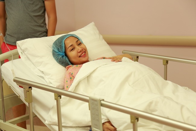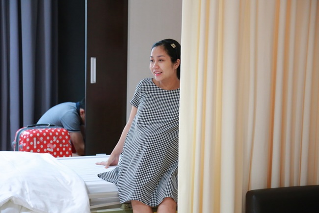 Cả hai vợ chồng đều mang tâm lý thoải mái vì đã có kinh nghiệm từ hai lần trước. Trước khi đến bệnh viện, cô còn chia sẻ một số hình ảnh lên trang cá nhân và viết những dòng tâm sự cầu nguyện cho mọi sự bình an.
