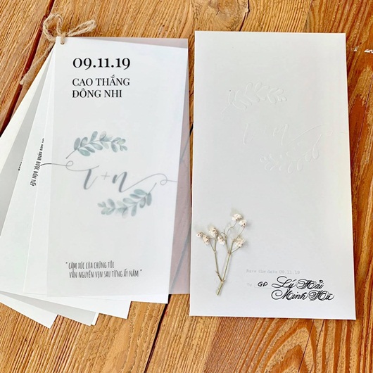 Cận cảnh thiệp cưới của Ông Cao Thắng - Đông Nhi. Nguồn: Fanpage Lý Hải - Minh Hà |