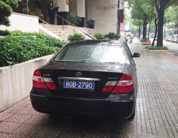 Phát hiện xe biển xanh 80B đậu trên vỉa hè, ông Đoàn Ngọc Hải đã gọi điện yêu cầu lãnh đạo phường ra lập biên bản xử phạt.