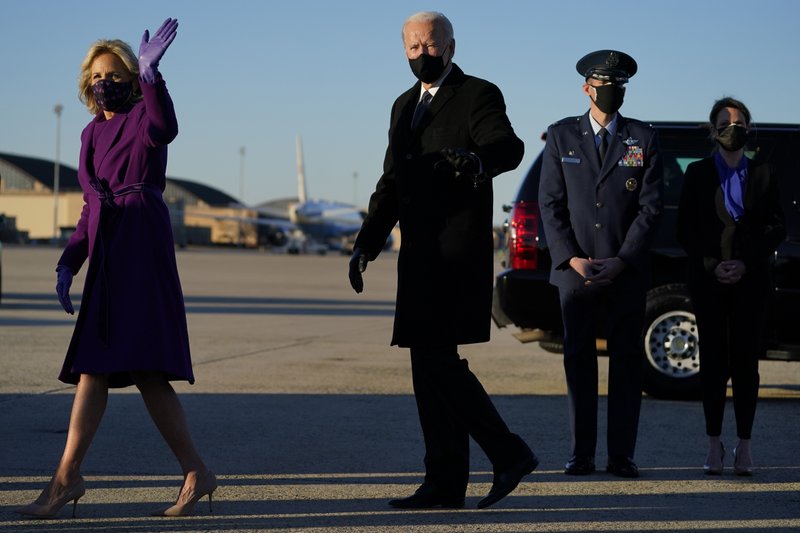Tổng thống đắc cử Joe Biden và phu nhân Jill Biden tới Căn cứ không quân Andrews ngày 19/1. Ảnh: AP |