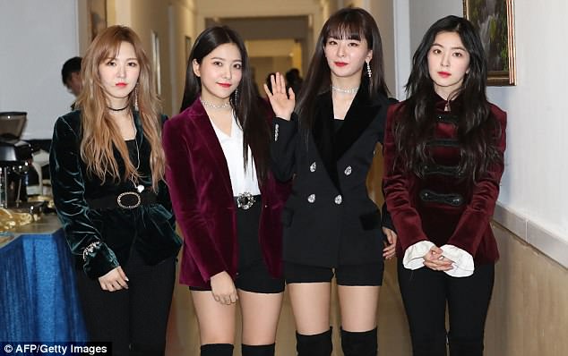 Trong các bức ảnh do truyền thông Triều Tiên công bố, ông Kim Jong-un được nhìn thấy bắt tay các thành viên của nhóm nhạc nữ thần tượng Red Velvet nổi tiếng nhất của Hàn Quốc.