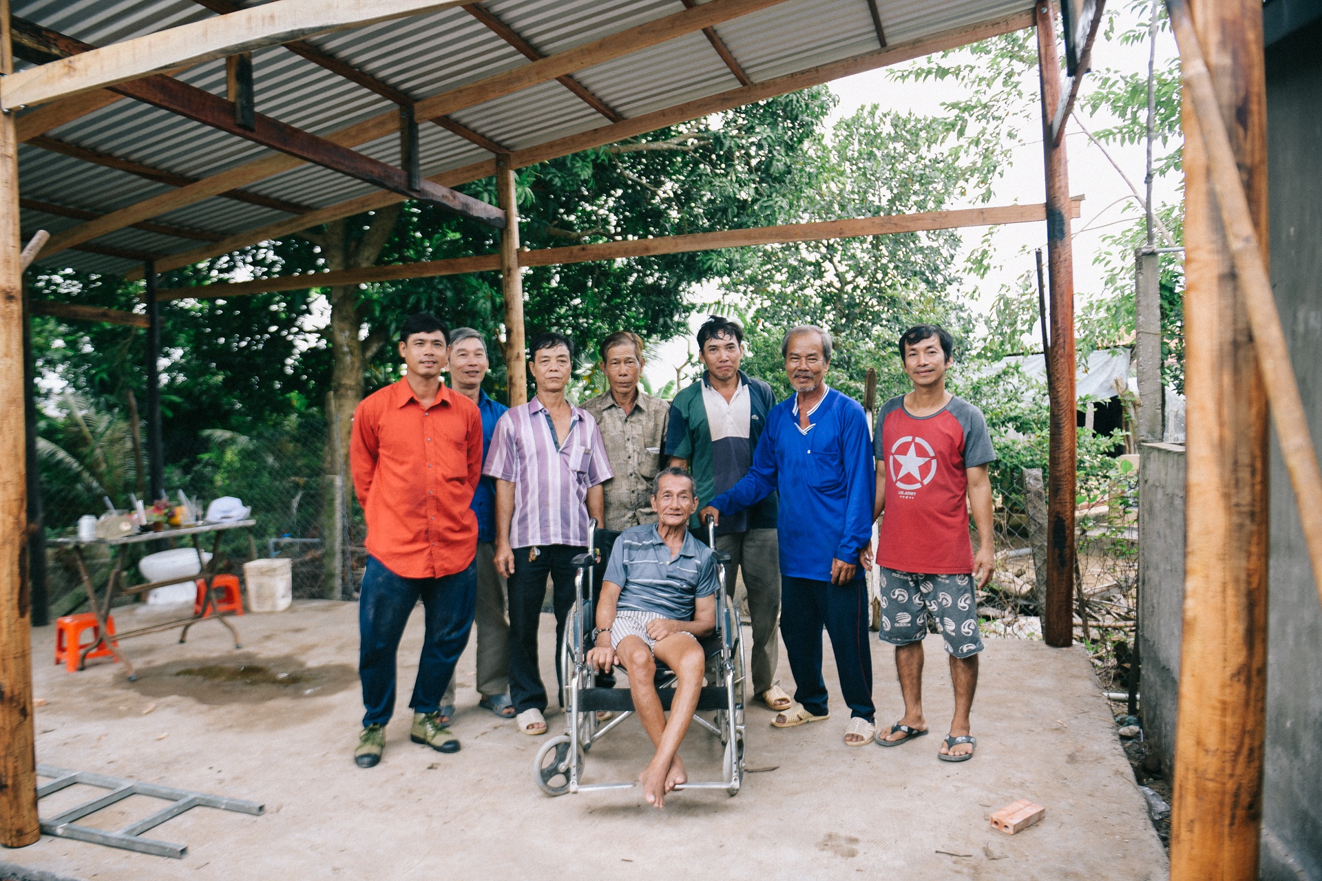 Ông Tư và các cộng sự dựng nhà cho các hộ nghèo. Ảnh: Tri thức trực tuyến |