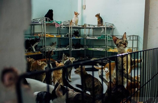 (ĐSPL) - Ngôi nhà của "Leo và những người bạn" chỉ tầm 15m2, lần đầu tiên chúng tôi thấy một người nước ngoài sống tại Việt Nam có thể ở trong một ngôi nhà có diện tích nhỏ hẹp như vậy. Chỉ có duy nhất một phòng và Leo dành phòng đó cho tất cả gần 60 chú mèo mà anh đang nuôi nấng.