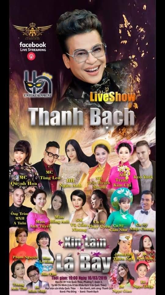 Tối 16/03, liveshow Thanh Bạch: Xin làm lá bay đã diễn ra thành công tốt đẹp tại Sân Khấu Kịch Trần Quốc Thảo, địa chỉ: 81 Trần Quốc Thảo, phường 7, quận 3, Tp Hồ Chí Minh.