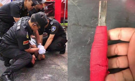 Kẻ lạ mặt này bất ngờ lấy dao liên tiếp đâm về phía Nhậm Đạt Hoa. Lực lượng an ninh có mặt tại hiện trường mất một khoảnh khắc sững sờ rồi mới lao vào khống chế kẻ hành hung.