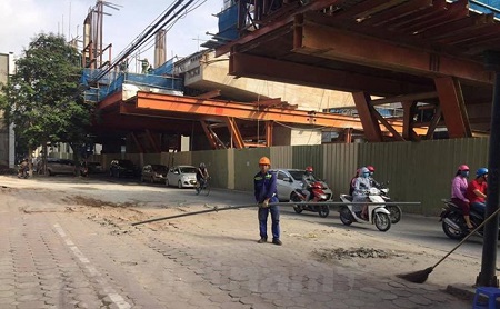 Sau khi để ống tuýp sắt có chiều dài khoảng 3m rơi từ công trường đường sắt trên cao Nhổn – Ga Hà Nội (trên đường Cầu Giấy), Giám đốc nhà thầu và quản lý công trường đã bị cảnh cáo.