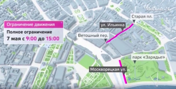 Hai tuyến phố bị cấm (màu tím) nhằm phục vụ lễ nhậm chức. - Ảnh đồ họa: Moskva 24. |