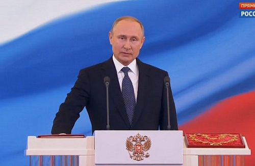 "Là tổng thống Liên bang Nga, tôi thề sẽ tôn trọng đồng thời bảo vệ quyền và tự do của công dân; tuân thủ và bảo vệ Hiến pháp; bảo vệ chủ quyền, độc lập, an ninh và toàn vẹn lãnh thổ quốc gia; trung thành phục vụ nhân dân", ông Vladimir Putin nói cùng lúc đặt tay phải lên bìa đỏ của cuốn Hiến pháp Nga trong buổi lễ.