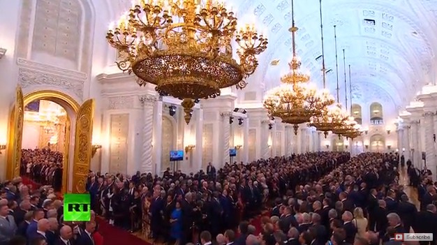 Sau khi Tổng thống Vladimir Putin tuyên thệ, Chánh án tòa án hiến pháp Nga Valery Zorkin đã trao cho ông Putin biểu tượng quyền lực và tuyên bố ông chính thức bắt đầu nhiệm kỳ.