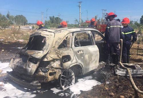 Chiếc xe bị cháy trơ khung. Ảnh: VnExpress |