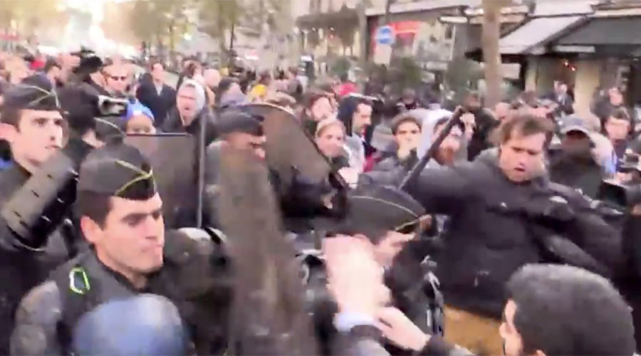 Đám đông lập tức xông tới phá vỡ rào cản của cảnh sát để có thể tiến tới quảng trường, tụ điểm thường xuyên của các buổi biểu tình ở Paris.