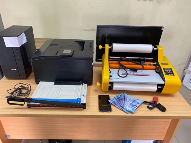 Lực lượng Công an huyện Thanh Trì vừa triệt phá thành công đường dây sản xuất, lưu hành tiền giả mệnh giá 500.000 đồng. Tại cơ quan công an, đối tượng sản xuất tiền giả khai nhận tự in bằng máy in màu và ép nilon vào.