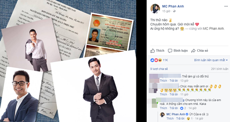 Mới đây, trên trang Facebook cá nhân, MC Phan Anh đã chia sẻ hình ảnh anh nộp đơn đăng kí dự tuyển để trở thành người dẫn chương trình cho gameshow hỏi đáp kiến thức Ai là triệu phú.