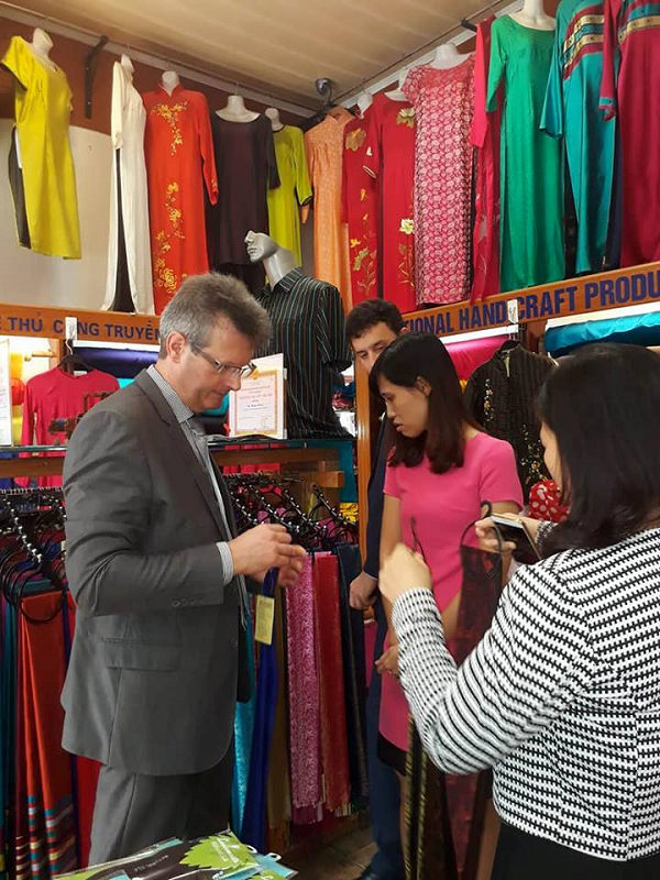 | Khách hàng nước ngoài rất quan tâm đến các sản phẩm lụa truyền thống Việt Nam |