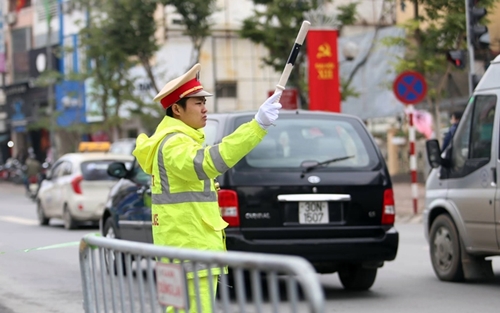 CSGT Hà Nội ra quân phân luồng giao thông. |