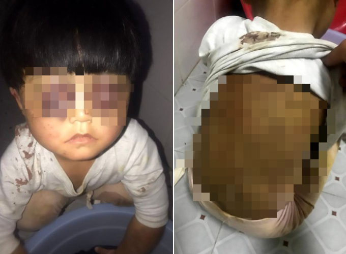 Được biết, bé gái 4 tuổi này thường xuyên bị bố đánh đập dữ dội, tới mức hai mắt bầm tím không thể mở ra; trên lưng bé còn có nhiều vết tàn thuốc lá châm vào.