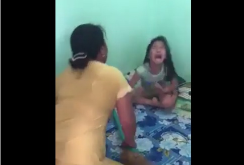 Theo như clip ghi lại, bà mẹ đã bắt con nằm xuống để dạy bảo vì con không nghe lời. Nhưng bé gái vì quá sợ hãi nên không dám nằm xuống, chỉ dám gào khóc. Lúc này, người mẹ càng trở nên hung dữ hơn nên đã lấy cán chổi quật liên tiếp vào người, vào đầu con gái mặc cho con gào khóc, van xin.
