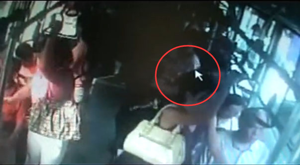 Theo như clip được máy giám sát quay lại thì 1 phút sau khi lên xe, gã này đã bắt đầu tiến đến phía sau một cô gái trẻ xinh đẹp mặc váy ngắn để giở trò. Sau khi ngó nghiêng những vị khách xung quanh và thấy không ai chú ý đến mình, hắn ta bắt đầu đưa bàn tay chạm vào vòng 3 của cô gái. Khoảng 2 phút sau, cô gái phát hiện ra kẻ bệnh hoạn đứng phía sau mình liền đi tới giữa xe để tránh “bàn tay thối” của hắn.