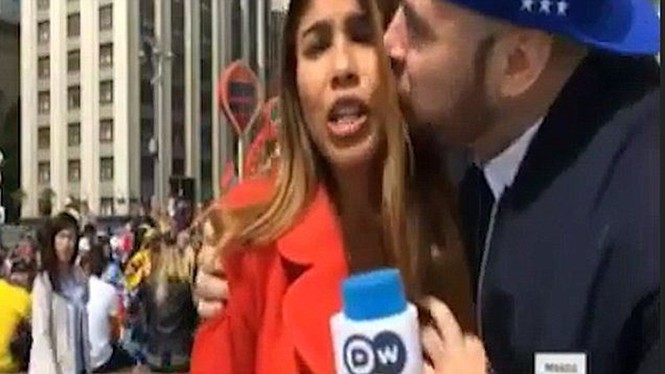 Nữ phóng viên bị hôn ngay trên sóng truyền hình. |
