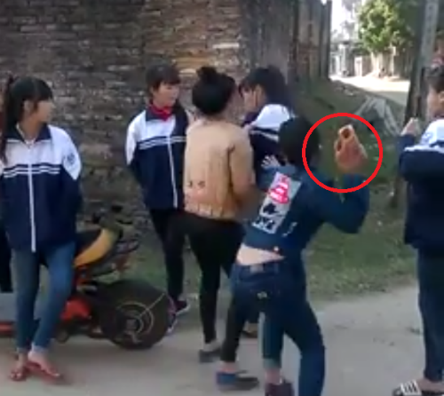 Theo nội dung đoạn video, sau khi dừng xe đứng lại chất vất một em nữ sinh, nhóm đối tượng xông vào dùng tay đấm thẳng mặt, đầu và lưng, túm tóc giật mạnh, một đối tượng còn lăm viên gạch đe dọa.