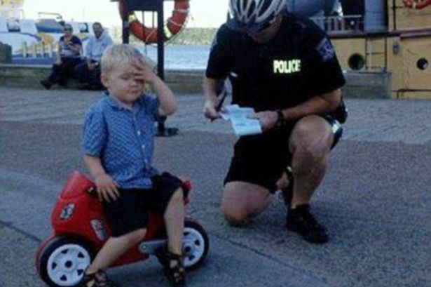 Declan Tramley, chỉ vừa mới 3 tuổi, đang ở trên chiếc xe dành cho trẻ em thì bất ngờ bị cảnh sát yêu cầu dừng xe lại. Nguyên do là cậu bé vi phạm luật giao thông vì dừng đỗ xe không đúng nơi quy định.