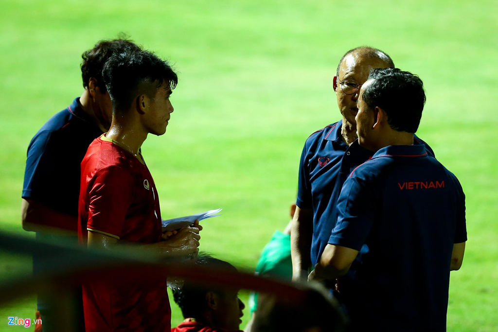 Ngay sau khi hiệp hai kết thúc, thầy Park trao đổi với vài học trò, đưa ra các mệnh lệnh mới với thái độ không được vui.