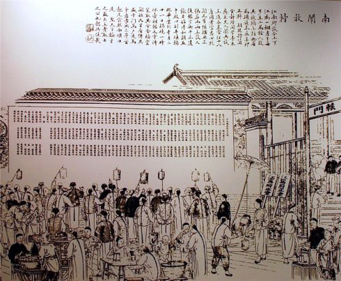 Tranh vẽ lại kỳ thi thời phong kiến tại Trung Quốc. |