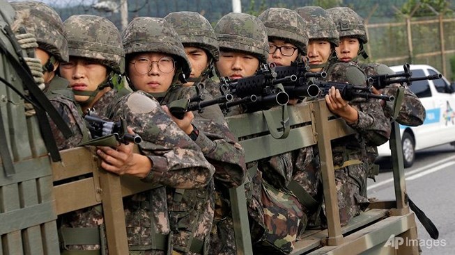 Hàn Quốc thực hiện chính sách nhập ngũ nghiêm ngặt, mọi thanh niên trong độ tuổi từ 18-28 đều có nghĩa vụ phục vụ trong quân đội một thời gian. Ảnh: AP |