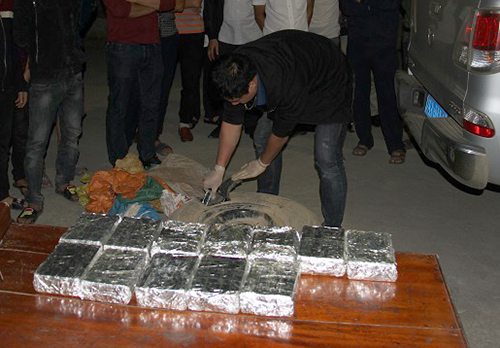 Công an tỉnh Lào Cai vừa thu giữ 40 bánh heroin được giấu trong lốp dưới gầm xe ôtô biển xanh giả.